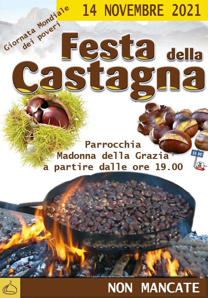 Domenica 14 novembre 2021 a partire dalle ore 19, in occasione della Giornata mondiale dei Poveri, presso il nostro oratorio si svolgerà la “Festa della Castagna”, una serata all’insegna del buon cibo, con musica, giochi e tanto divertimento.