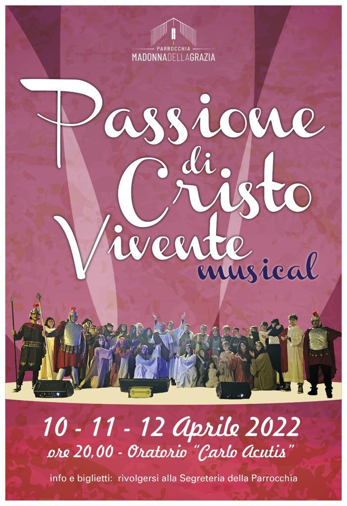 Il 10, 11 e 12 aprile nella parrocchia Madonna della Grazia I giovani della parrocchia aiutati da alcuni adulti vi aspettano presso il nostro oratorio per la “Passione di Cristo Vivente – il Musical”. Non mancate!! Per l’acquisto dei biglietti potete rivolgervi presso la segreteria della parrocchia.